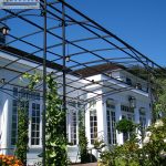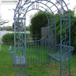 A wrought iron arbor or trellis can be placed securely into the ground and last for generations.